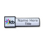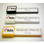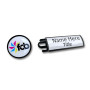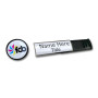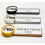 Our newest Logo Clip-On Reusable Window Badges come as a three part item, first part is your logo part, consisting of a domed insert, the second part being the semi-frame with your attachment of choice and the third part the insert protection window. All you need is to print your names onto paper, cut them out and insert them behind the supplied protection window. Alternatively use your Dymo Labeller and paste your name on the paper slide that is provided. Pictures above show the badges with printed paper insert in place.