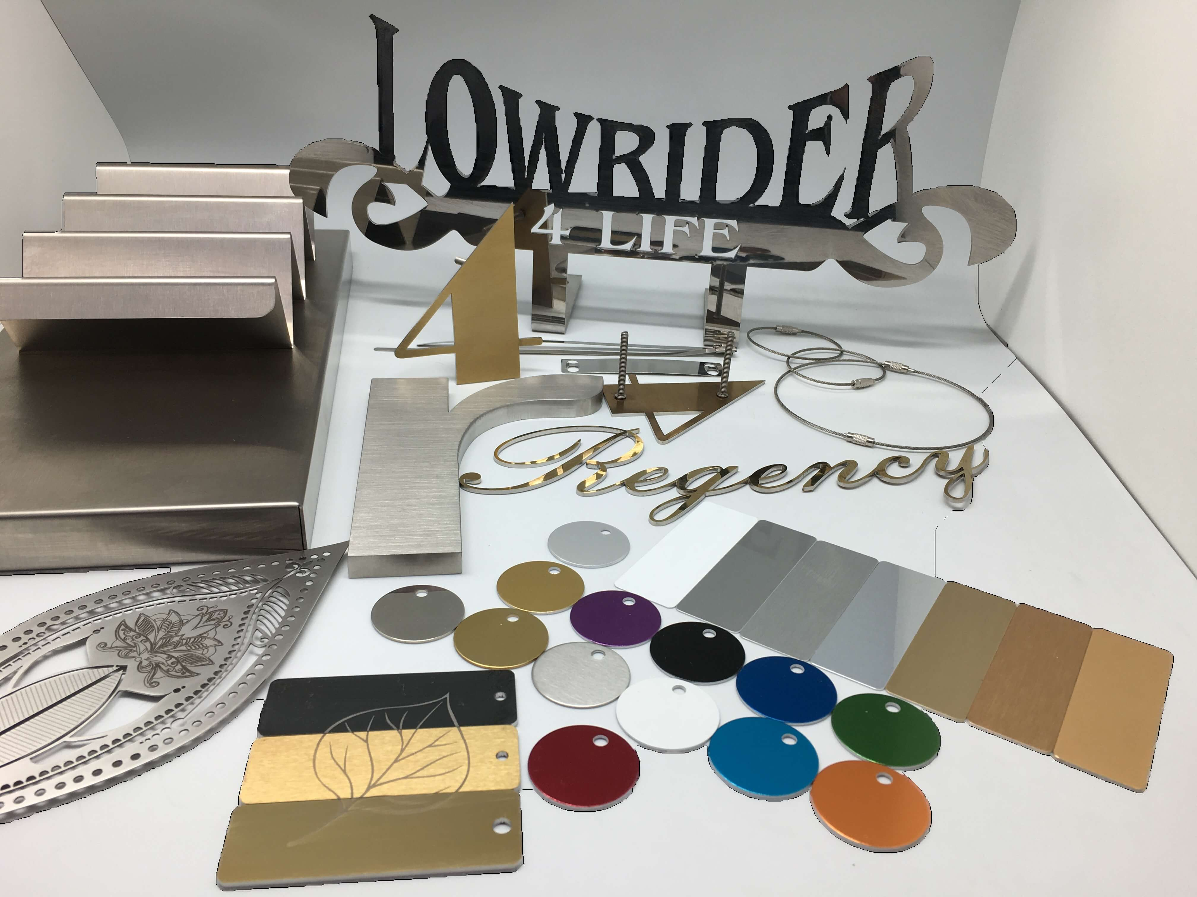 From a wide range of Stainless Steel in regular steel finish or even in gold, brass or black to acrylics in verious colours, multiple thicknesses to Aluminium from .06mm to 10mm thick or even regular steel we can help you creat your bespoke items.